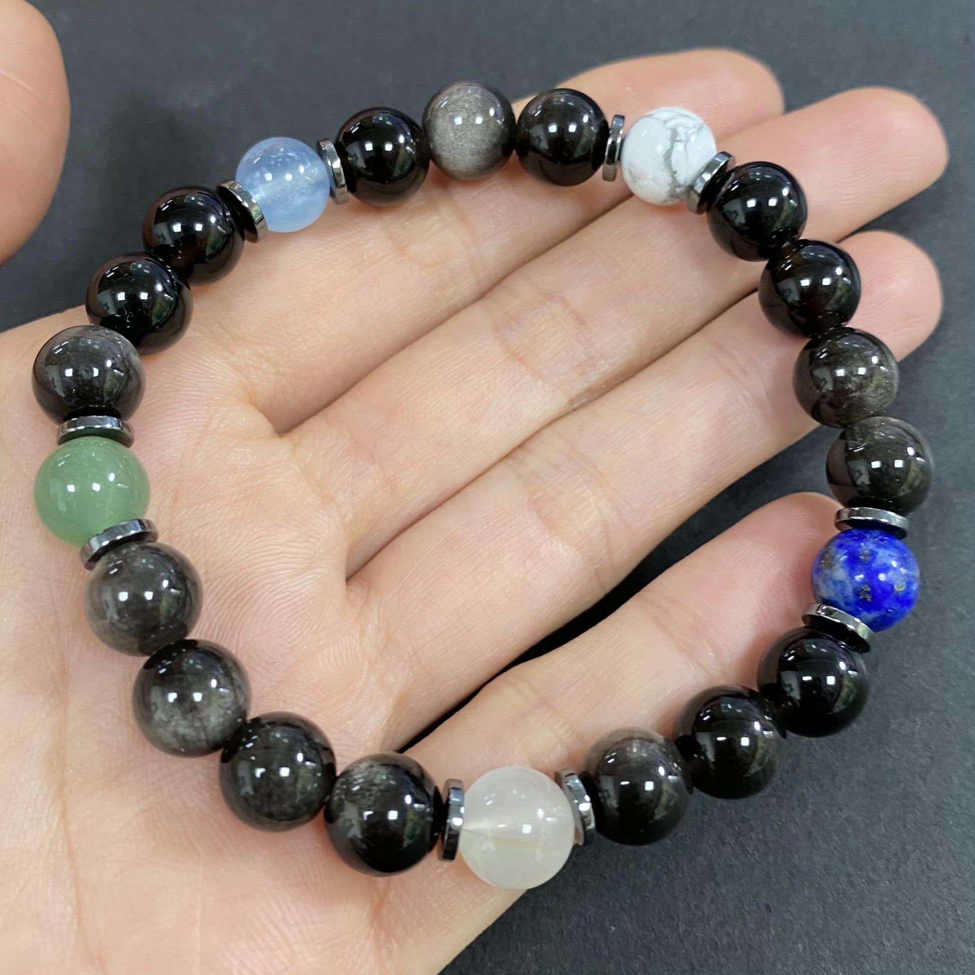 Silver Obsidian Chakra for Protection and Apotropaic Crystal Bracelet