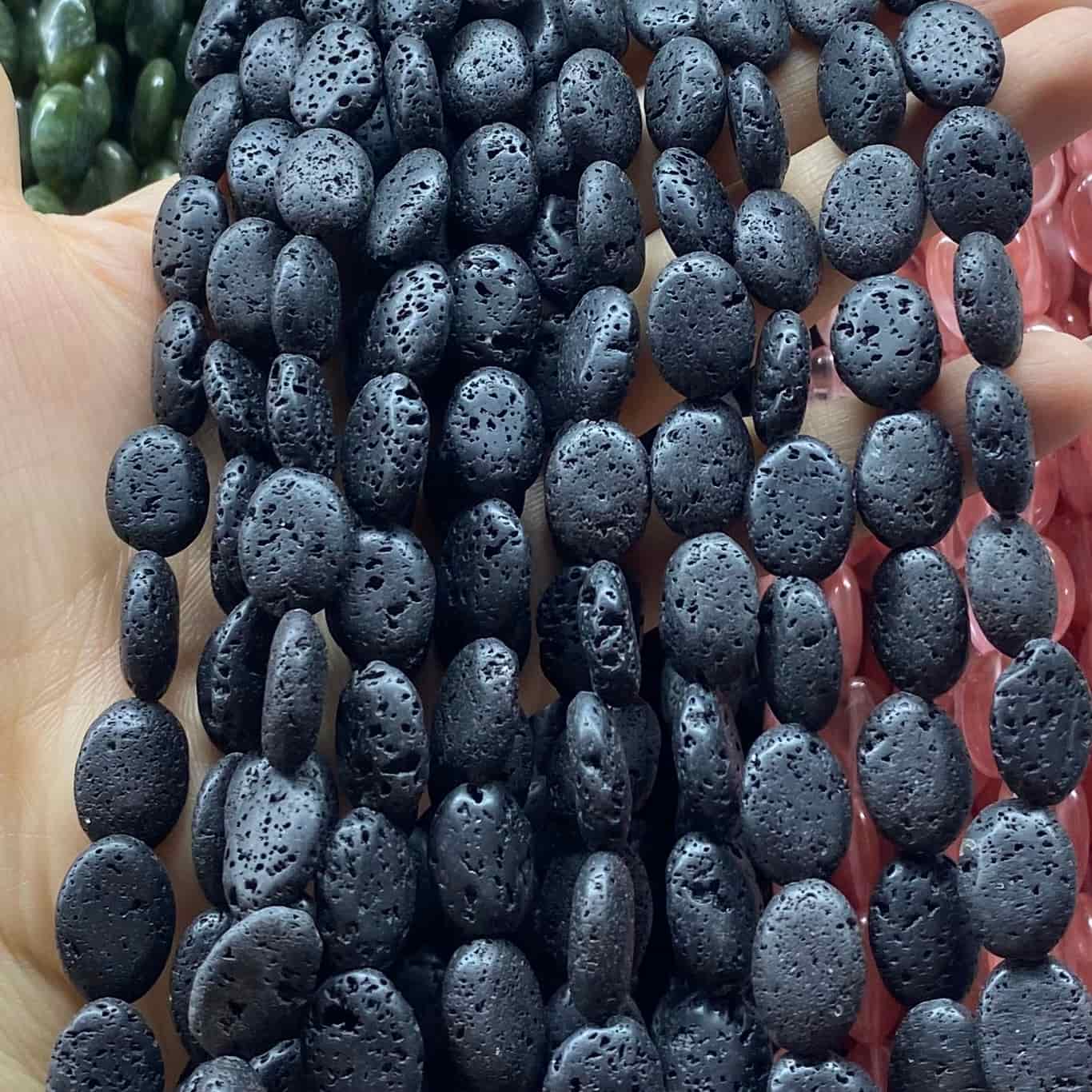 10x14mm about 0.7-0.8mm hole, about 25per strand