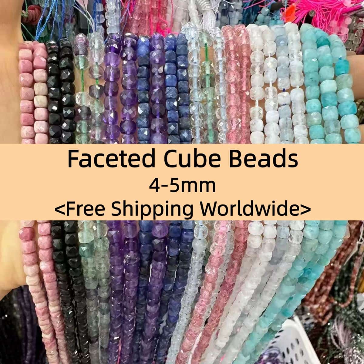 Square Faceted Beads 4-5MM Gemstone/Quartz/Jasper/Agate